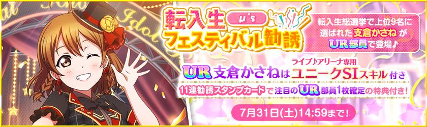 公式 ラブライブ スクフェス事務局 転入生フェスティバル勧誘 第4回転入生総選挙で4位に輝いた支倉かさねちゃんがついにur部員として登場 7 31 14 59までの期間限定勧誘ですので お見逃しなく Lovelive スクフェス